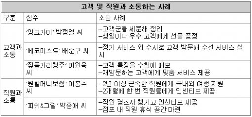 서울 관악구 신림동에서 퓨전포장마차 ‘피쉬&그릴’을 운영하는 박종애 씨는 직원들 사이에 ‘큰누나’로 통한다. 직원들의 각종 경조사를 직접 챙겨주고 인센티브를 제공하는 것은 기본이다. 점포 3층에 직원 휴식공간을 별도로 마련하기도 했다. 자연스럽게 직원들의 근속기간이 길어지면서 음식 맛이나 서비스 질이 꾸준히 유지됐다.