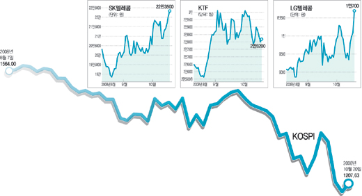 특히 16일에는 코스피가 사상 최대폭(126.50포인트)으로 하락하며 전 업종이 폭락했지만 유일하게 통신업종만 0.35% 상승했다.