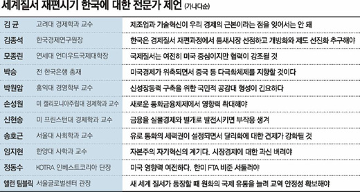 “이번 금융위기를 계기로 새로운 국제금융 질서가 탄생할 것이다. 한국은 아시아 통화금융체제를 논의하는 데 참여해 목소리를 높여야 한다.”(손성원 미국 캘리포니아주립대 교수)