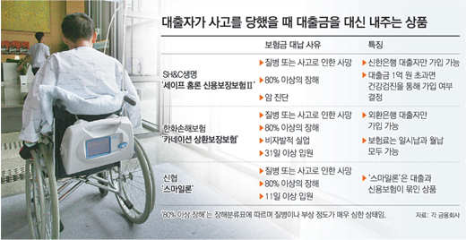 신협의 대출 상품인 ‘스마일론’은 신용보험이 함께 묶여 있다. 이 상품의 ‘신용장해보험’을 들면 대출자가 11일 이상 입원했을 때 그달의 대출 상환금을 신협에서 대신 내준다. 매달 내야 하는 상환 원리금이 200만 원이라면 월 2만2600원의 보험료를 내고 입원에 따른 리스크를 피할 수 있다.
