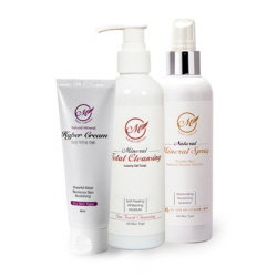 천연미네랄스프레이, 클렌징, 하이퍼크림 등으로 구성된 이 제품은 피부 건강성을 회복하는 데 결정적인 역할을 하는 고농도 천연미네랄성분과 호호바오일, 포도씨 등 20여종의 천연 식물성 추출물이 함유되어 있다.