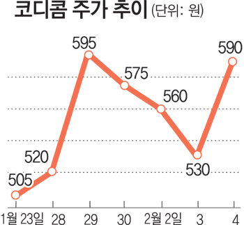 4일 코스닥시장에서 디지털 보안시스템 업체인 코디콤은 전날보다 60원(11.32%) 오른 590원에 장을 마감했다. CCTV의 특수렌즈를 생산하는 코스피시장의 삼양옵틱스는 105원(14.79%) 급등한 815원에 거래를 마쳤다.