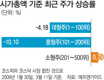 최근 국내 증시가 중소형주 위주로 움직이는 경향이 뚜렷해지고 있다.