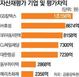 GS칼텍스는 자산재평가 결과 자산이 1조156억 원 증가했다. 부채비율은 184%로 나타나 자산재평가를 하지 않았을 때보다 30%포인트 줄었다. 대한항공도 자산재평가에 따른 평가차익이 7239억 원이나 돼 500%대였던 부채비율이 462%로 감소했다.