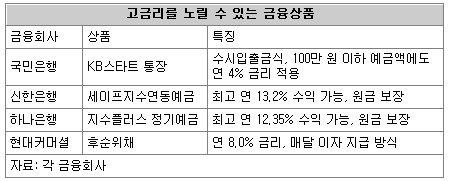 최근 금융회사들이 내놓은 고금리를 노릴 수 있는 상품들을 알아보자.
