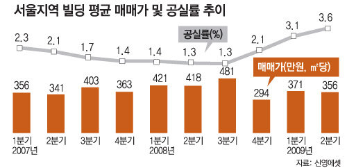 신영에셋 조사에 따르면 서울의 평균 빌딩매매가는 1999년 m²당 176만 원에서 꾸준히 상승세를 타 2008년 415만 원으로 올랐다. 올해 2분기(4∼6월) m²당 356만 원 수준인 매매가가 경기가 회복되면 2008년 고점 수준으로 올라설 것이라는 시각이 우세하다.