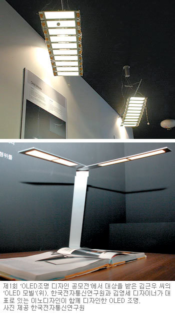 한편 지경부와 ETRI는 이날 경기 고양시 킨텍스에서 제1회 OLED 조명 디자인 공모전 시상식을 열고 대상으로 선정된 ㈜인디디자인 김근우 씨 등 13명에게 시상했다고 밝혔다.