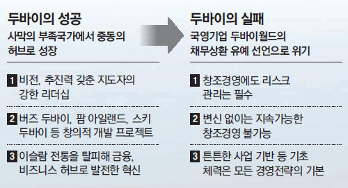 갑작스러운 채무중단선언으로 글로벌 신흥시장의 간담을 서늘하게 한 ‘두바이 사태’가 두바이월드의 채무 재조정 착수로 진정되는 모습을 보이고 있다. 사막 위 부족국가에서 출발해 7성급 초호화 호텔과 세계에서 가장 높은 빌딩, 인공 섬을 잇달아 건설하며 화제를 뿌린 두바이는 상상력의 한계에 도전하는 ‘창조경영’의 상징이었다. 세계의 많은 국가와 기업들이 두바이를 창조경영의 벤치마킹 대상으로 삼았다. 하지만 두바이는 과도한 차입에 기반한 부동산 투자가 문제가 되면서 당장 빚 독촉에 시달리는 채무자의 신세로 전락했다. 두바이로 대표되는 창조경영에 새로운 의문을 던져준 셈. 그렇다면 창조경영의 의미가 퇴색된 것일까? 동아일보는 경영 전문가들에게서 두바이의 실패에서 배우는 창조경영의 새로운 과제를 살펴봤다.