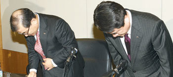 “죄송합니다” 유동성 위기에 빠진 금호아시아나그룹이 끝내 일부 계열사의 워크아웃에 동의했다. 30일 서울 영등포구 여의도동