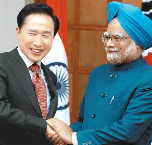 인도를 국빈 방문한 이명박 대통령은 25일 뉴델리 총리공관에서 만모한 싱 총리와 정상회담을 갖고 이 같은 내용을 뼈대로 하는 한-인도 공동성명을 채택했다.
