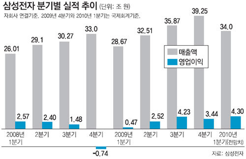 통상 1분기는 계절적인 비수기로 분류되고 있어 이날 공개된 1분기 실적 전망치는 의외로 받아들여지고 있다. 글로벌 금융 위기 이후 삼성전자가 시장 지배력을 강화한 결과라는 분석도 나온다. 삼성전자가 1분기에 4조 원이 넘는 영업이익을 올린 것은 사상 최고의 영업이익을 냈던 2004년 이후 처음이다.