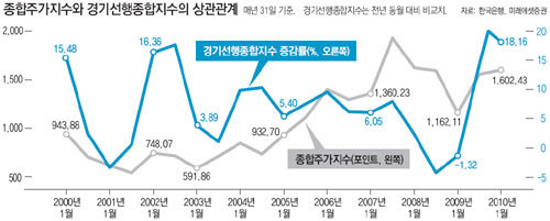 최근 증시에서는 ‘주가는 경기선행종합지수와 함께 움직인다’는 오래된 법칙이 흔들리고 있다. 투자자들로서는 주가 방향을 가늠하는 데 어려움을 겪을 수밖에 없다.