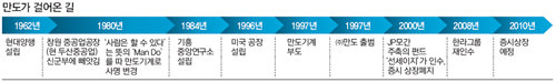 만도는 자동차 제동장치, 조향장치, 쿠션장치 등 섀시시스템을 생산하는 부품 전문업체. 자동차 부품 중 엔진을 제외한 가장 중요한 부품 3가지를 모두 만드는, 세계적으로 드문 회사다. 세계 최대 자동차 부품회사인 독일 보쉬도 제동장치와 조향장치를 생산할 뿐이다. 한마디로 한국 자동차 산업의 발전사에서 현대자동차와 함께 빼놓을 수 없는 회사다.
