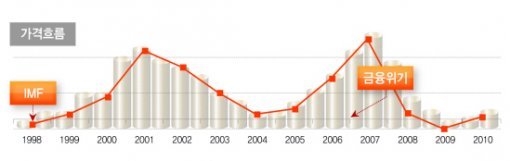 주택가격 하락 및 부동산 거품론이 언론에 자주 노출되고 있지만 부동산의 가격추이를 보면 상승기와 하락기가 반복된다. 따라서 최고의 수익률을 올리려면 가격이 저렴한 시점에 분양을 받거나 주택을 구매하는 것이 내 집을 마련하는 가장 좋은 시점이라고 전문가들은 말한다.