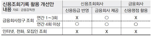금융감독원은 이 같은 내용을 골자로 한 ‘신용조회기록 활용 종합개선방안’을 30일 발표했다.
