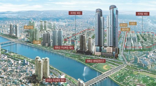 이 같은 ‘강변 프리미엄 효과’는 지방 부동산 시장에서도 예외가 아니다. 전통적인 프리미엄 조건인 조망권과 더불어 지자체의 강변 개발 수혜로 강변 프리미엄이 한층 강화될 전망이다. 이런 가운데 울산 태화강변에 자리한 울산 신정 두산 위브더제니스가 ‘태화강 프리미엄’을 누리고 있어 화제다.