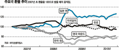 《일본 정부가 15일 외환시장에 전격적으로 개입해 엔화가치를 떨어뜨리자 서방국가의 불만이 터져 나오고 있다. 중국의 위안화 절상을 압박해온 미국과 유럽은 갑자기 일본이 독자적으로 시도한 엔화의 평가절하 시도에 당황하는 기색이 역력하다. 반면 통화 강세의 여파에 시달려온 신흥 경제국은 이를 빌미로 속속 자국 환율 방어에 뛰어들 조짐을 보이고 있어 글로벌 ‘통화 전쟁’이 본격화되는 양상이다.》