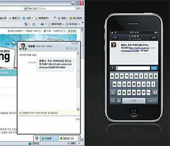 네이버가 연말에 선보일 ‘네이버톡(Talk)’은 일종의 메신저다. 컴퓨터에서 보낸 메시지를 상대방은 스마트폰에서 확인할 수 있고 서로 파일 전송도 가능하다. 사진 제공 NHN