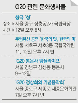 G20 회의를 맞아 한국을 방문한 각국의 지도급 인사들에게 우리 문화의 우수성을 알리고 전통 문화상품의 해외시장 개척을 꾀하는 행사들이 잇따라 열린다.
