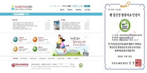 경희사이버대학교 장애학생지원센터가 지난 11월 말, 한국정보화진흥원에서 시행하는 제10회 웹 접근성 인증심사에서 웹 접근성 품질마크를 획득했다. 이로써 웹 사이트 이용에 생소한 사람들도 무리 없이 경희사이버대학교 장애학생지원센터 홈페이지를 이용할 수 있게 됐다.