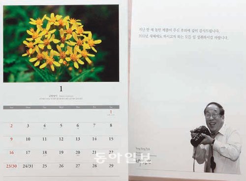 박용성 회장, 직접 찍은 야생화 사진으로 달력 제작