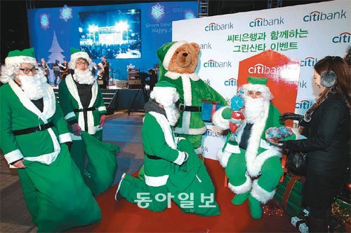 한국씨티은행은 24일 서울 청계광장에서 중고 장난감을 재활용해 시민들에게 선물하는 ‘그린 산타 캠페인’을 벌였다. 씨티은행은 지난달 29일부터 이달 15일까지 전국 지점에서 고객들로부터 사용하지 않는 장난감 2만4000여 점을 기증받아 재활용이 가능한 장난감을 살균포장해 선물로 만들었다.