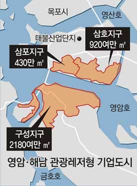 논란이 되는 부분은 920여만 m² 규모의 삼호지구와 2180여만 m² 규모의 구성지구다.