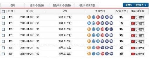 한편, 박승희 골드회원이 이용한 퍼펙트조합기는 7~21개의 로또번호 중 당첨번호가 5~6개 포함된다는 전제 조건을 만족시킬 경우 최소한의 게임으로 최상의 당첨조합을 생성해내는 획기적인 시스템이다.