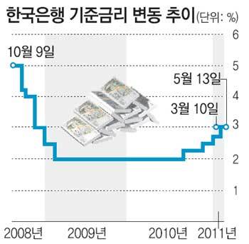 한편 이날 한은 금통위는 시장의 예상과 달리 기준금리를 연 3.0%로 2개월째 동결했다. 김 총재는 동결 배경에 대해 “중앙은행은 상방향 위험보다 하방향 위험에 대해 훨씬 더 세심하게 분석해야 한다”며 “대외적 위험 요인과 저축은행 문제 등 내부적으로 상당한 위험 요인을 고려했을 때 이번에는 신중하게 판단해 (기준금리를) 현 수준으로 두고 앞으로 보자고 판단했다”고 설명했다.