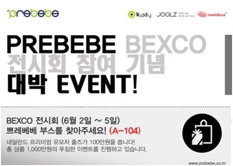 기존 구매 고객들을 위한 이벤트도 마련되었다. 키디(KIDDY) 유모차, 맨듀카(MANDUCA) 아기띠, 줄즈(JOOLZ) 유모차를 가지고 부스(3홀 A-104)에 방문하시면 선착순 100명에게 포인트와 물티슈를 증정한다.