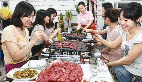 서울 성동구는 고기를 산 뒤 1인당 4000원을 내면 상추, 밑반찬과 함께 고기를 구워 먹을 수 있는 식당 ‘고기 익는 마을’을 마장동 마장축산물시장에 열었다. 성동구 측은 “회를 그 자리에서 직접 떠 인근 식당에서 바로 먹을 수 있는 노량진수산시장의 시스템에서 아이디어를 얻었다”고 말했다.