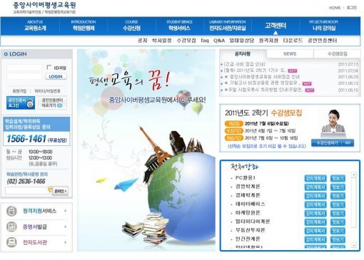 이를 반영하듯 현재 2011학년도 2학기 수강생을 모집 중인 ‘중앙사이버평생교육원’이 호황을 맞고 있다. ‘중앙사이버평생교육원’은 학점은행제를 통해 사회복지사와 보육교사 2급 자격증 취득을 쳬계적이고 편리한 수업시스템을 통해 돕고 있어 주부, 노인, 학생은 물론 바쁜 직장인들에게도 인기가 높다.