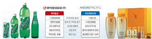 주식시장을 덮친 공포감은 ‘황제주’도 피해갈 수가 없었다. 주가가 100만 원이 넘어서는 고가 우량주인 일명 황제주들도 8월 초 미국의 신용등급 강등 이후 유럽 재정위기 등 잇단 대외악재가 이어지자 오락가락 갈지자 걸음을 하고 있다. 다만 롯데칠성음료와 아모레퍼시픽은 이 같은 혼돈 속에서도 여타 황제주들에 비해 선방한 것으로 평가된다. 해외경기의 영향을 덜 받는 내수주라는 공통점을 지닌 이들이 향후 전 세계적인 신용강등의 소용돌이 속에서 황제주의 자리를 굳건히 지킬 수 있을지, 긍정적인 요인부터 위험요소까지 요모조모 따져봤다.