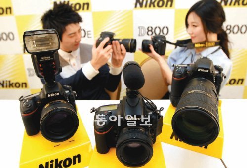 니콘이미징코리아는 7일 서울 중구 태평로 한국프레스센터에서 디지털렌즈교환식(DSLR) 카메라 신제품 ‘D800’을 선보였다. 시중에 나온 DSLR 중 가장 많은 3630만 유효화소 수를 지원하고 초고화질(full HD) 동영상을 최대 29분 59초 동안 연속 촬영할 수 있다.