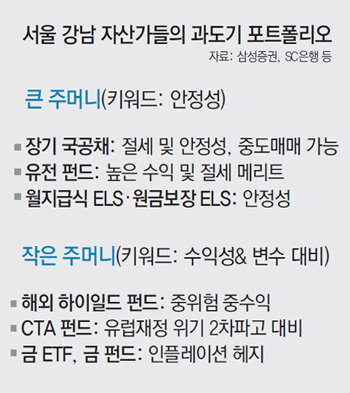 CTA(Commodity Trade Advisory·주로 원자재에 투자하며 헤지펀드 전략 구사) 펀드도 ‘보험’ 용도로 꾸준히 인기를 끌고 있다. 주식뿐만 아니라 전 세계 시장의 채권 통화 원자재 등 다양한 선물상품에 투자하는 CTA 펀드는 가격의 방향성을 쫓는다. 상승 추세의 신호가 있을 때는 매수하고 하락 추세라고 판단되면 매도하는 전략을 사용해 상승장이든, 하락장이든 강한 ‘추세’가 있으면 수익을 거둔다. 스탠다드차타드(SC)은행 목동PB센터 박순현 투자자문 과장은 “자산가들이 큰 자금은 안정적으로 가되 자산의 5∼10%는 리스크는 있더라도 수익을 낼 수 있는 투자처에 옮겨 담고 있다”며 “한 달 새 포트폴리오를 바꿔 달라는 문의가 잇따랐는데 특히 미국 하이일드 펀드에 대한 관심이 크다”고 말했다.