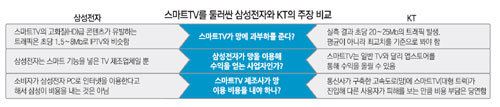 삼성전자 스마트TV에 대한 인터넷 접속 제한을 둘러싸고 KT와 삼성전자가 한 치의 양보 없는 공방전을 벌이고 있다.