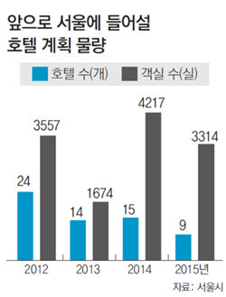또 앞으로 공급될 호텔 물량도 많지 않다. 서울시에 따르면 올해 24곳에 3557실, 2013년에 14곳 1674실, 2014년에 15곳 4217실, 2015년에 9곳 3314실 정도다. 현재 부족한 물량을 충족시키기에는 미흡한 상태다. 이에 따라 호텔 투자 수익률도 평균 7.5% 정도로 높아지면서 오피스 투자수익률(6%)을 크게 웃돌고 있다.