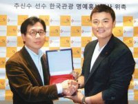 한국관광공사는 19일(현지 시간) 미국 애리조나 주 피닉스에서 미국프로야구(MLB) 클리블랜드 인디언스의 추신수 선수(오른쪽)를 한국관광 명예홍보대사로 위촉했다. 추 선수는 2010년 광저우 아시아경기에서 한국대표팀을 우승으로 이끌었고 메이저리그에서 2009, 2010년 ‘20-20클럽(20홈런, 20도루 이상)’에 이름을 올리기도 했다. 추 선수는 “한국의 브랜드 가치를 높이고 한국 관광을 홍보하는 역할을 맡게 돼 기쁘다”며 “한국의 아름다움을 전 세계에 알리는 일에 최선을 다하겠다”고 밝혔다. ■ 50세 이상 일터 기업-참여자 모집