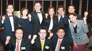 한국투자증권은 1년에 두 차례 최우수 직원과 그 가족들을 초청해 문화행사를 연다. 유상호 사장(뒷줄 왼쪽에서 세 번째)이 지난해 상반기 최우수 직원들과 기념촬영을 하는 모습. 한국투자증권 제공