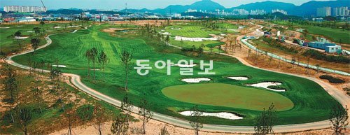 도심 속 휴양기능을 갖춘 청라국제도시 베어즈베스트 골프장이 내달 문을 연다. 사진은 개장을 앞 둔 4번 홀 전경. 수도권 매립지에 건설되는 드림파크 골프장은 9월경 개장 예정이다.