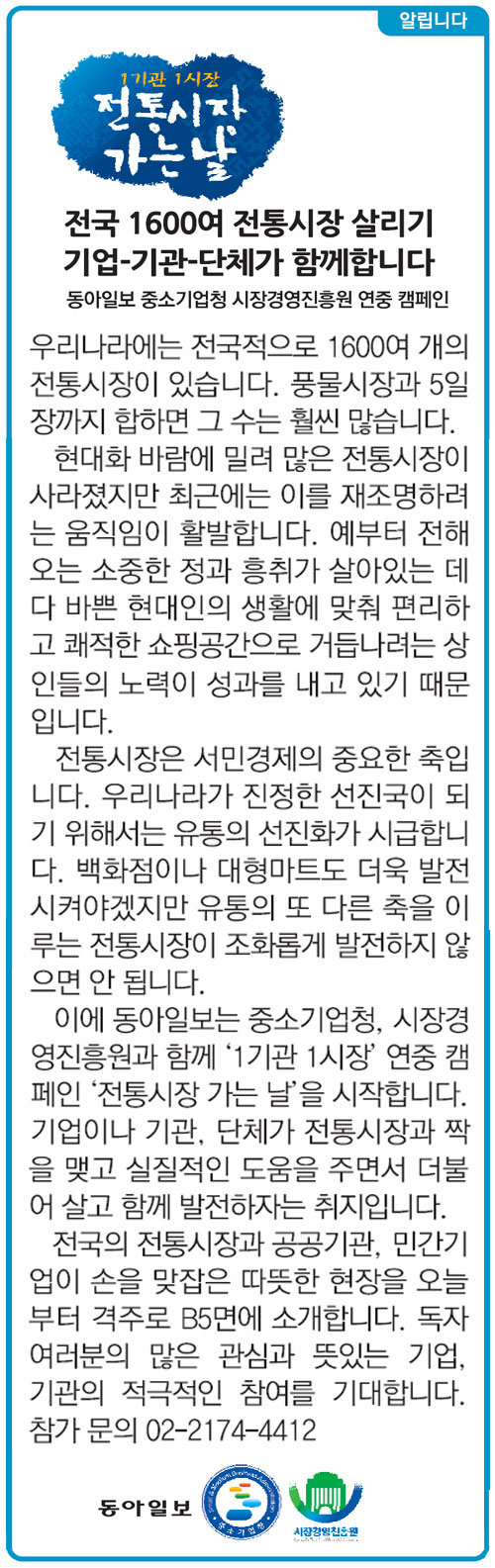 [알립니다]전국 1600여 전통시장 살리기 기업-기관-단체가 함께합니다
