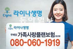 가족의 달 5월을 맞아 라이나생명보험㈜(www.lina.co.kr)이 무배당 가족사랑플랜보험(갱신형)을 내놨다. 이 상품은 보험에 가입한 사람이 보험 가입 기간 중 질병, 상해로 사망하면 80세까지 최대 3억1000만 원의 사망보험금을 준다. 사망보험금은 매월 300만 원을 10년간 연금처럼 나눠서 받거나 일시불(3억1000만 원)로 받을 수 있다. 단, 보험계약일로부터 만 1년 안에 재해 이외의 원인으로 사망하면 사망보험금의 50%를 받는다.