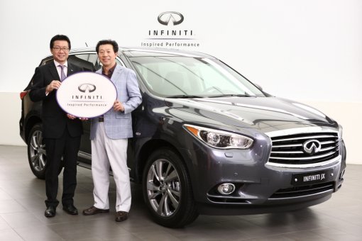 인피니티(대표, 켄지 나이토)는 24일 7인승 럭셔리 크로스오버 올 뉴 인피니티 JX(The All-new INFINITI JX)의 1호차 전달식을 갖고 차량 인도를 시작했다고 밝혔다. 아시아 최초로 한국에 공개된 올 뉴 인피니티 JX의 첫 번째 주인공은 ㈜두성케미스 노찬종 대표이사다. 노찬종 대표이사는 “넓은 공간과 다양한 편의 사양이 마음에 들었다. 주중에는 해외에서 방문하는 고객들과 장거리 이동을 편하게 할 수 있고, 주말에는 넓은 실내와 트렁크 공간을 활용해 레저와 여행을 즐길 수 있을 것”이라고 차량 선택 이유를 전했다.