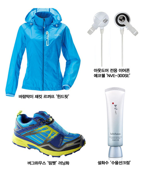 러닝화 필수…발목 뒤틀림 등 방지 이어폰·바람막이 재킷·선크림 등 ‘아웃도어 전용’ 기능성 제품 인기