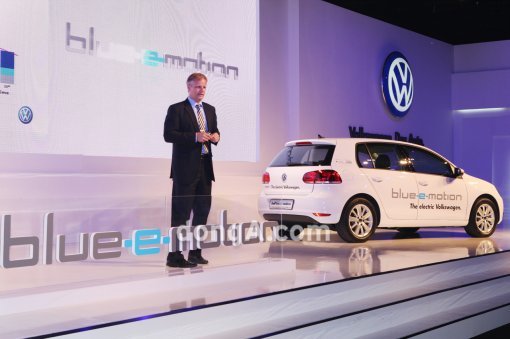 폭스바겐코리아는 서울 중구 장충동 신라호텔에서 기자간담회를 통해 ‘골프 블루-e모션 로드쇼’를 진행한다고 발표하고 폭스바겐 그룹이 선정한 18개 전기차 전략국가 중 하나로 한국이 선정됐다고 3일 밝혔다. 또한 2014년 한국 시장에 순수 전기차 도입을 추진할 계획이라고 말했다.