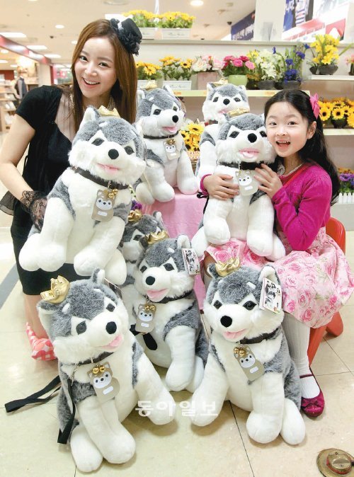 KBS 개그콘서트의 인기 캐릭터 ‘브라우니’가 대형마트에도 등장했다. 14일 롯데마트 서울역점에서 모델들이 정품 라이선스 브라우니 인형(50cm·5만1300원)과 함께 포즈를 취하고 있다.