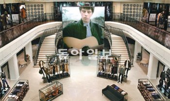 버버리가 자사 웹사이트 환경을 매장에 도입한 영국 런던 리젠트 스트리트 매장 전경. 중앙의 대형 화면에는 웹사이트의 첫 화면처럼 패션쇼와 다양한 공연 등이 나온다. 버버리 제공지난달 영국 런던 리젠트 스트리트에 문을 연 버버리의 플래그십 스토어는 매장 곳곳에 100개의 스크린과 500개의 스피커를 설치했다. 2층 높이의 대형 스크린에는 인터넷 첫 화면처럼 각종 공연과 패션쇼 영상이 끊임없이 나온다. 밖에 비가 오면 대형 화면에도 비가 내리는 영상과 함께 여기에 어울릴 만한 트렌치코트를 보여 준다.