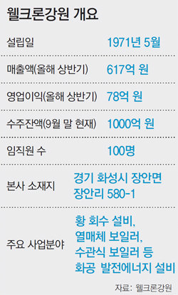 취업 준비생인 서희창 씨(23·제주대 에너지공학과)와 김혜미 씨(25·단국대 식물생명공학과)는 29일 서울 구로구 디지털로 웰크론강원 서울사무소에서 영업본부장 손기태 전무, 경영지원본부장 이훈규 상무와 마주앉았다. 웰크론강원은 취업시장에서 잘 알려지지 않은 알짜 기업이다. 2009년 코스닥 시장에 입성한 상장사이기도 하다.