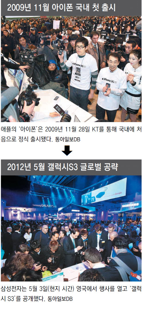 하지만 2009년 11월 28일 애플의 스마트폰인 ‘아이폰’이 국내에 상륙한 뒤 모든 게 달라졌다. KT경제경영연구소는 25일 ‘스마트혁명, 세상을 바꾸다’라는 보고서에서 “스마트폰은 아이폰 도입 이후 3년 만에 예상을 뛰어넘은 광풍을 일으키며 한국사회 전반에 스마트혁명을 일으켰다”고 평가했다. 보고서에 따르면 2009년 11월 1%에 그쳤던 스마트폰 보급률은 3년 만에 58.3%로 증가했다.
