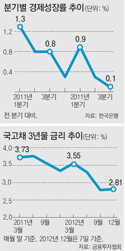 지금과 같은 저성장-저금리 현상은 지금까지 한국 경제에서 유례가 드문 일이다. 통상 금리가 낮아지면 기업들의 투자와 가계의 소비가 늘어나면서 성장률이 높아지게 된다. 하지만 지금은 투자심리와 소비심리가 얼어붙으면서 이 같은 선순환 고리가 끊어졌다는 것이 경제전문가들의 설명이다.